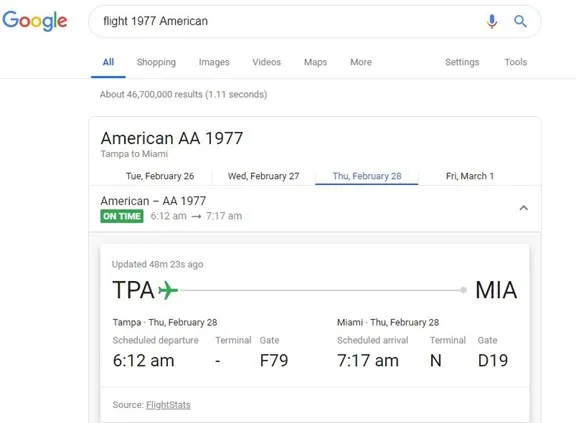 When you need to access flight information, you’re often on the go. Either getting ready to head to the airport or waiting for someone to arrive. Having to load multiple site pages in your browser can take valuable time. Instead, get your flight results directly from Google.