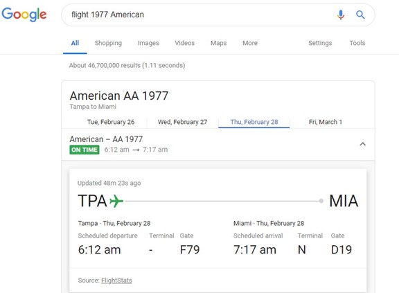 When you need to access flight information, you’re often on the go. Either getting ready to head to the airport or waiting for someone to arrive. Having to load multiple site pages in your browser can take valuable time. Instead, get your flight results directly from Google.